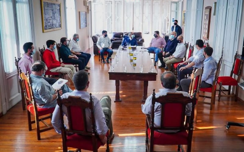 El intendente de Salto, Andrés Lima, el de Paysandú, Nicolás Olivera, y el de Río Negro, Omar Lafluf, se reunieron en la tarde de este lunes en Fray Bentos con los dirigentes de los centros comerciales de sus departamentos y representantes de la Confederación Empresarial del Uruguay (CEDU), para tratar el tema reapertura de fronteras y cómo evitar que esto afecte la economía del litoral.