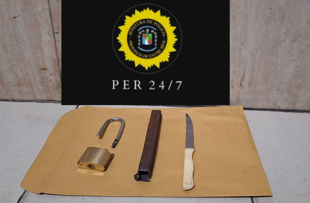 El Fiscal Dr. Arias dispuso la detención del masculino y secuestro de un cuchillo tramontina color blanco, un fierro, un candado dañado.