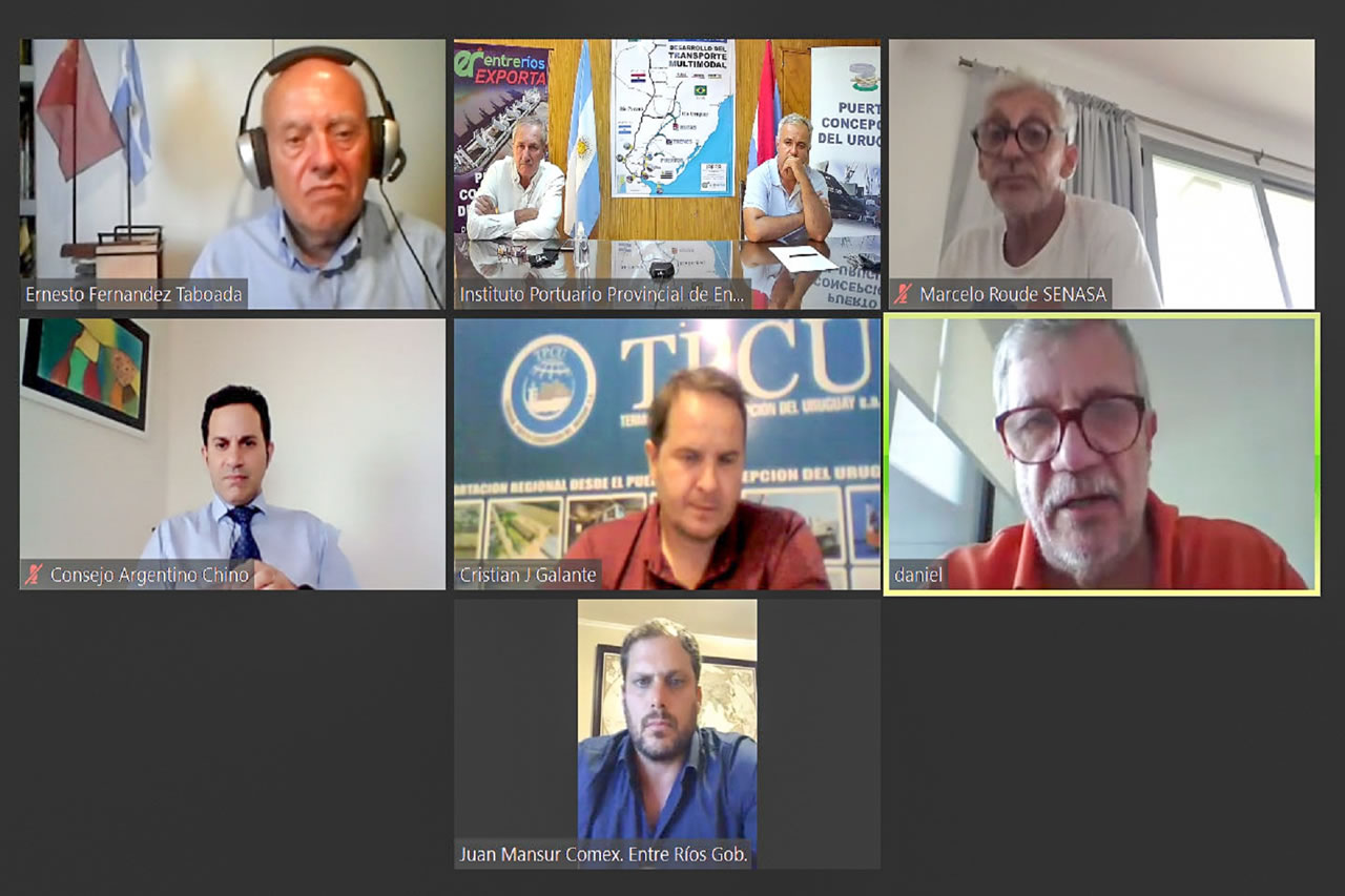 Autoridades portuarias entrerrianas y referentes del comercio internacional de China en la Argentina mantuvieron un encuentro por teleconferencia en el que se trató el interés de incorporar a los puertos entrerrianos la línea comercial de contenedores que importa China y que hoy salen desde los puertos de Buenos Aires o Rosario.