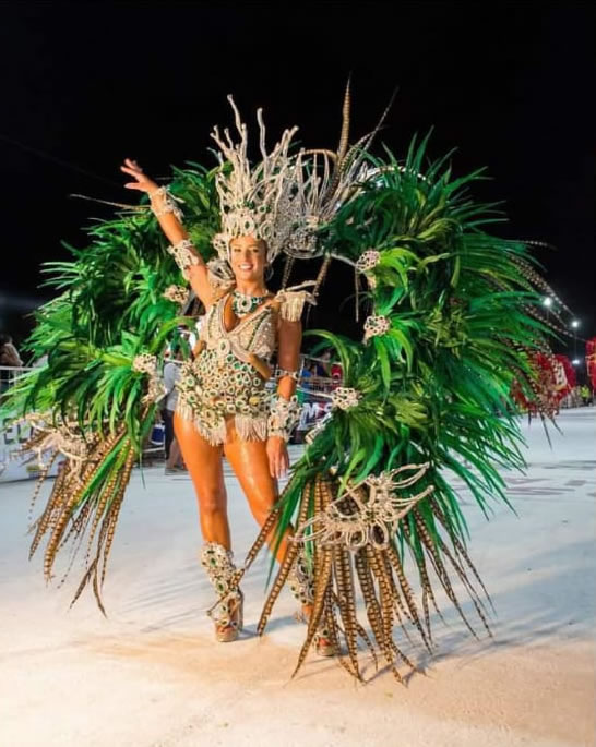Juliana Ponzoni (JP): «Es un honor ser reina, estoy viviendo unos días muy lindos por el amor de la gente. Atrás de un traje para salir a bailar 3 noches hay meses de trabajo y mucha gente para que yo pueda salir a disfrutar. Además que soy de la comparsa e hincha del club del cual es la comparsa (club Vélez), así que muy feliz de representarlos».