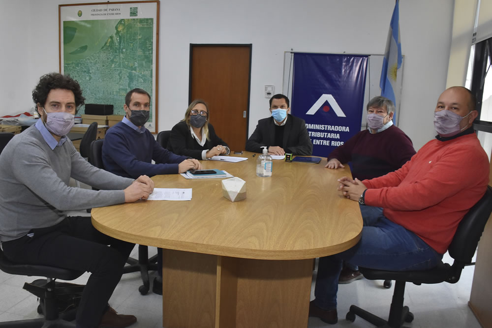En el marco del trabajo articulado que se lleva adelante entre las distintas áreas de gobierno, la ministra de Desarrollo Social y presidenta de la Compañía Entrerriana de Tierras S.E., Marisa Paira, acompañada por el secretario de Gestión, Andrés Dabín, y el gerente de la Compañía, Mauro Müller, se reunió con el director Ejecutivo de la Administradora Tributaria de Entre Ríos (ATER), Germán Grané, y el director general de Catastro, Carlos Duhalde, con el objetivo de articular acciones conjuntas que permitan intercambio de información y colaboración, a fin de agilizar la labor de ambos organismos.