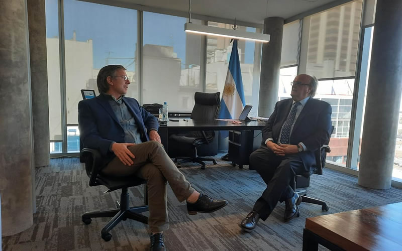 El ministro de Producción, Juan José Bahillo, realizó gestiones en el Banco de Inversión y Comercio Exterior (BICE) para acceder a herramientas crediticias e interiorizarse de las distintas líneas que la entidad financiera dispone para fomentar el comercio exterior.