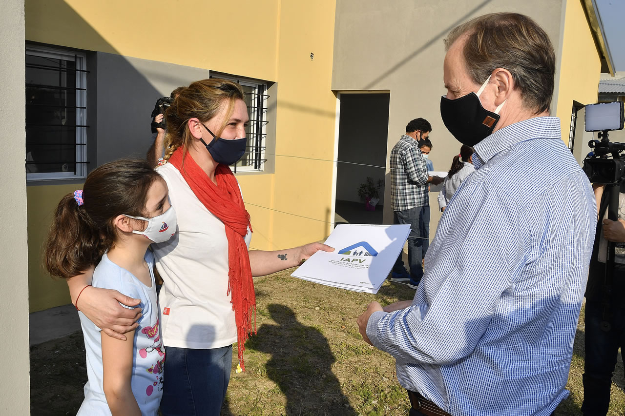 ”Respondemos no sólo a la necesidad de muchas familias entrerrianas sino que generamos mano de obra y desarrollo de la economía local”, dijo el mandatario en Los Charrúas al entregar viviendas.
