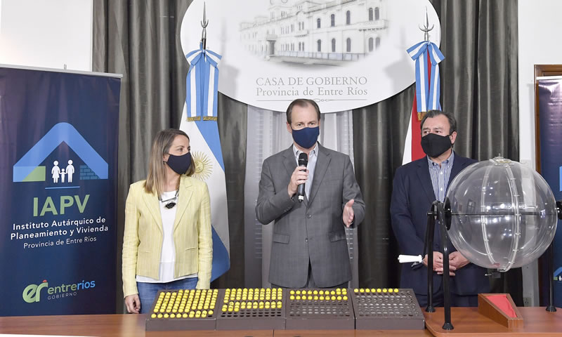 El gobernador Gustavo Bordet encabezó el sorteo de 201 viviendas que construyó el IAPV en ocho localidades. “La vivienda propia es un derecho constitucional y tenemos el compromiso de seguir haciendo realidad el techo propio para las familias de grandes ciudades pero también de pequeñas localidades».