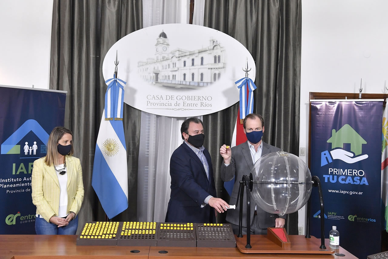Por su parte, el titular del IAPV, Marcelo Bisogni, destacó la importancia de este programa y el beneficio que tendrá para los entrerrianos. Dijo que para la Instituto de la Vivienda “es una enorme alegría poder realizar este sorteo en el marco del programa Primero Entre Ríos, Primero Tu Casa, con una inversión de 193 millones de pesos financiados en ciento por ciento por el gobierno de Entre Ríos”.
