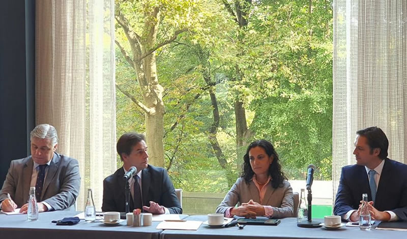 Estuvieron presentes, junto al mandatario, la ministra de Economía, Azucena Arbeleche; el canciller, Francisco Bustillo, y el embajador de Uruguay ante Estados Unidos, Andrés Durán.