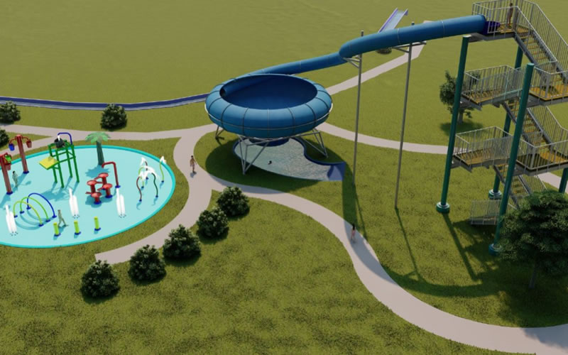 Se trata de un proyecto integral en el sector norte del predio. Será un nuevo nexo entre el Parque Acuático y la pileta Sensaciones del Parque Termal de la ciudad de Federación. La inversión supera los 102 millones de pesos.