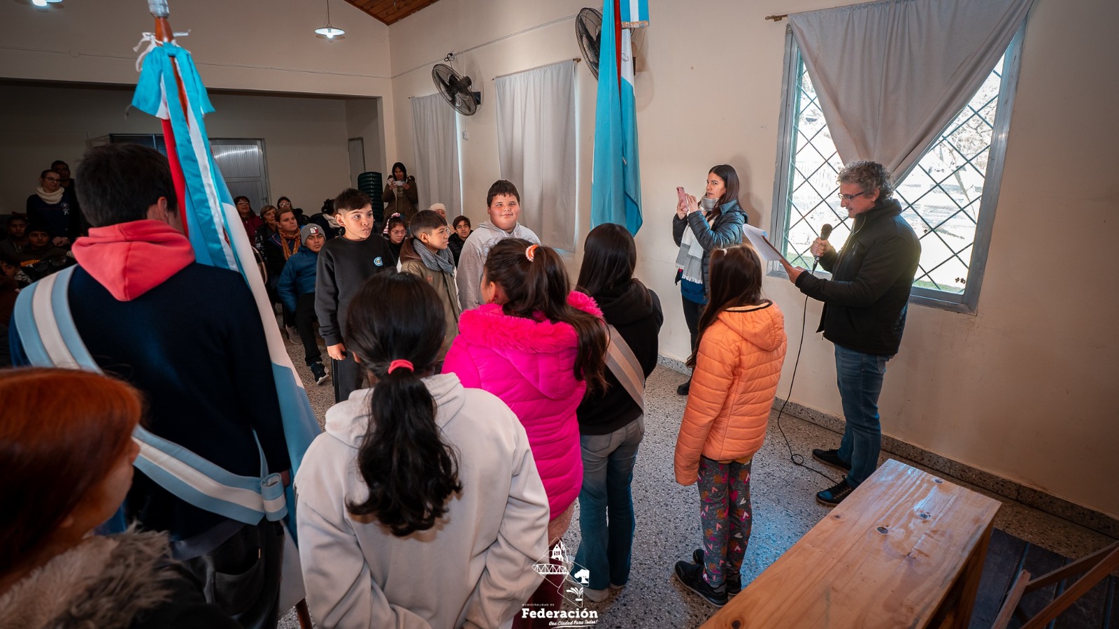 En un Parque Quirós colmado de familias y estudiantes, se vivió una jornada histórica. Por primera vez en la ciudad, un veterano de Malvinas, Mario Vaucher, fue el encargado de tomar la promesa a los alumnos de 4º grado, cumpliendo la normativa provincial. La ceremonia incluyó presentaciones corales, la participación de más de 15 escuelas y el estreno de la bandera oficial de Colón, que flameó por primera vez en un acto público.