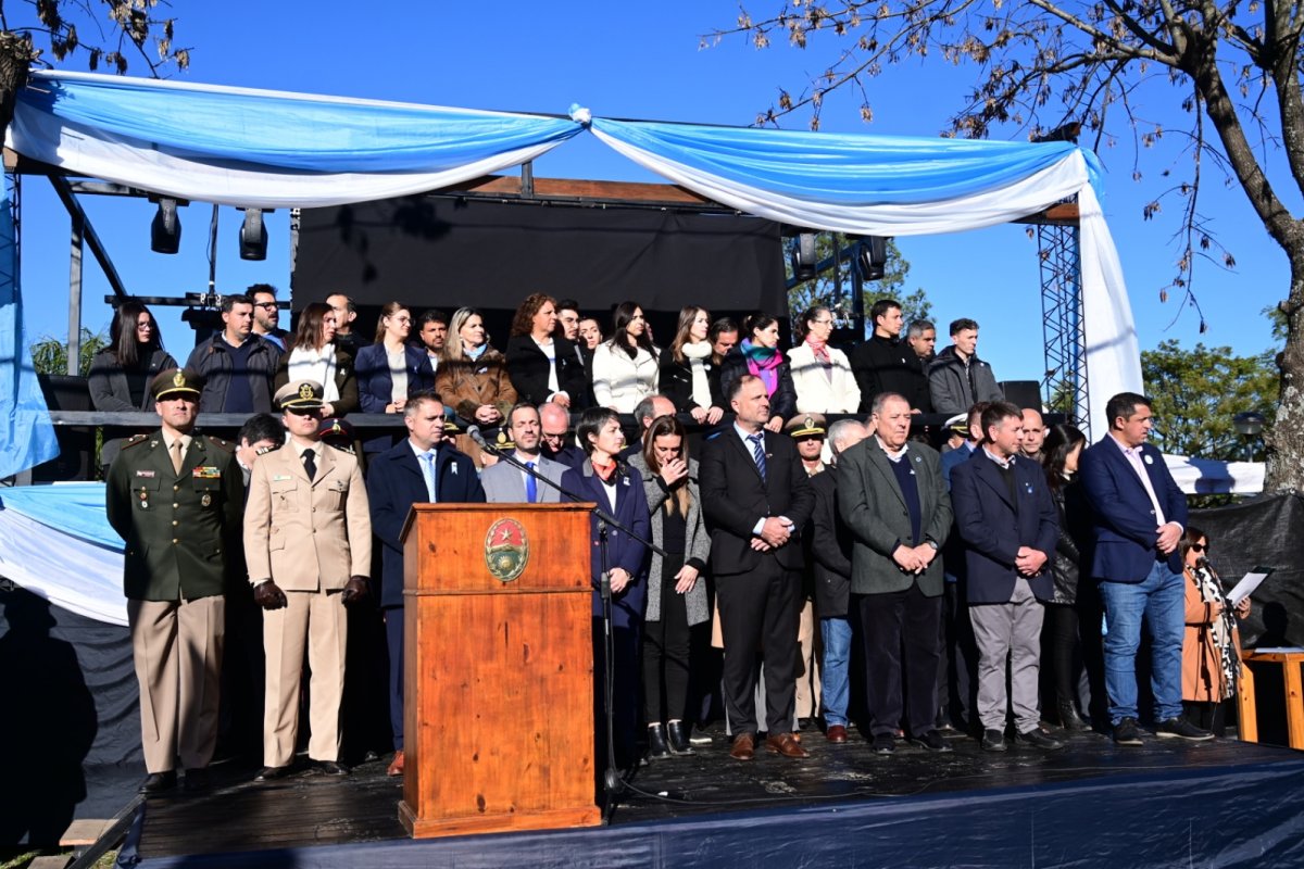 El intendente José Eduardo Lauritto encabezó el acto en la Plaza Francisco Ramírez, junto a autoridades provinciales y legislativas. Las palabras alusivas estuvieron a cargo del director de Producción, Diego Gaillard, quien resaltó el legado de Belgrano en educación, industria y compromiso público. La promesa de lealtad a la bandera fue realizada por alumnos de cuarto grado, acompañados por veteranos de Malvinas y la directora departamental de Escuelas.