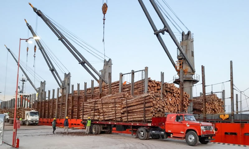 Este fin de semana se completó la carga de un nuevo buque ultramarino desde los puertos de Concepción del Uruguay e Ibicuy. En ambas terminales se volvieron a reducir los tiempos de embarque completando 31.400 toneladas de troncos de pino.