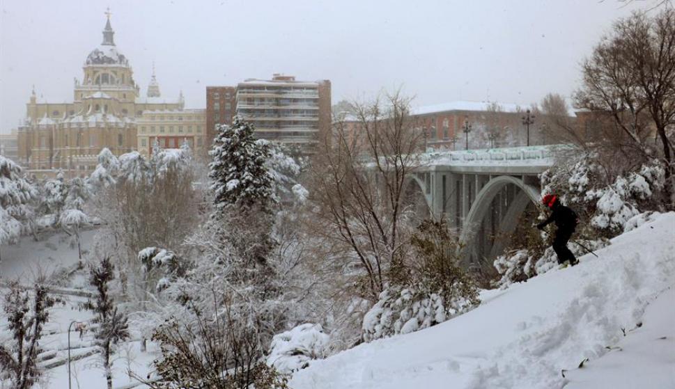 Y aunque la Unidad de Emergencias Militares (UME) despejó algunas arterias centrales, la mayoría de calles siguen siendo muy poco transitables en Madrid, donde puede observarse hasta medio metro de nieve en muchas de ellas.