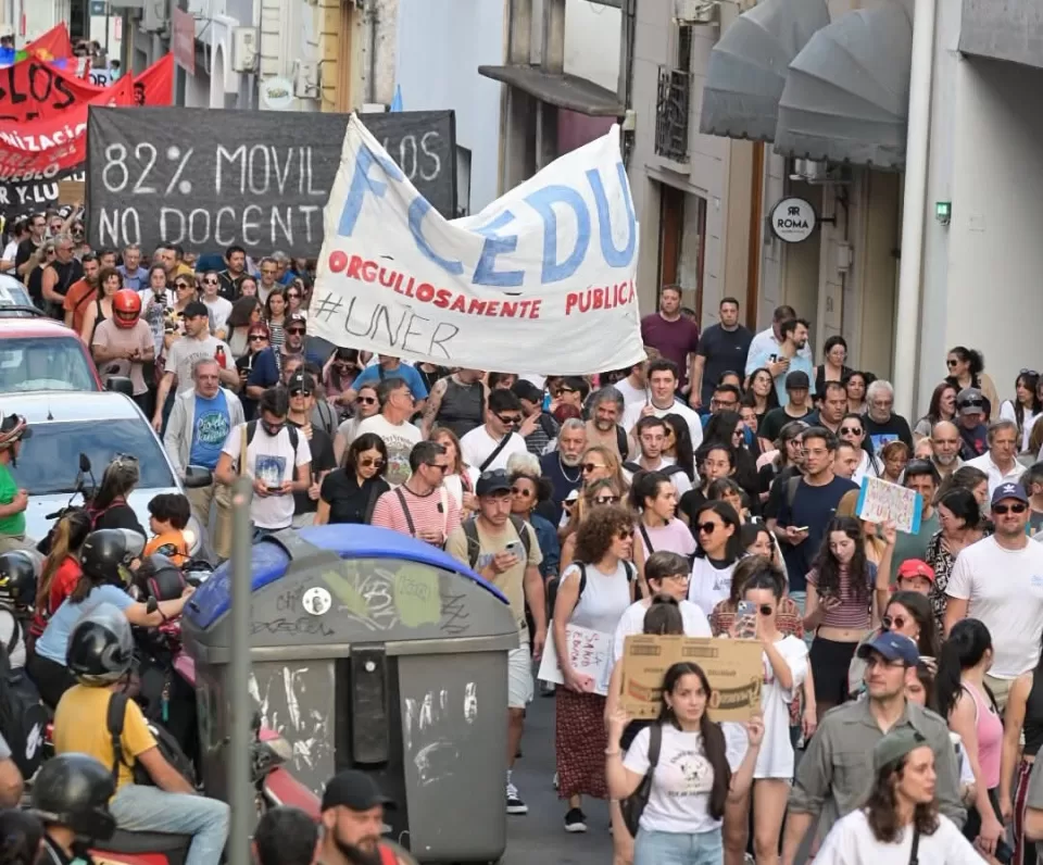 Según Diario Junio, unas 3.000 personas participaron el mismo miércoles en Concordia, desde Plaza Urquiza hasta Plaza 25 de Mayo, en defensa del financiamiento universitario y la educación pública. La columna fue encabezada por universidades como UNER, UTN, FHAyCS y UADER, junto a gremios y organizaciones sociales, bajo la consigna: “Contra nadie, a favor de todos”.