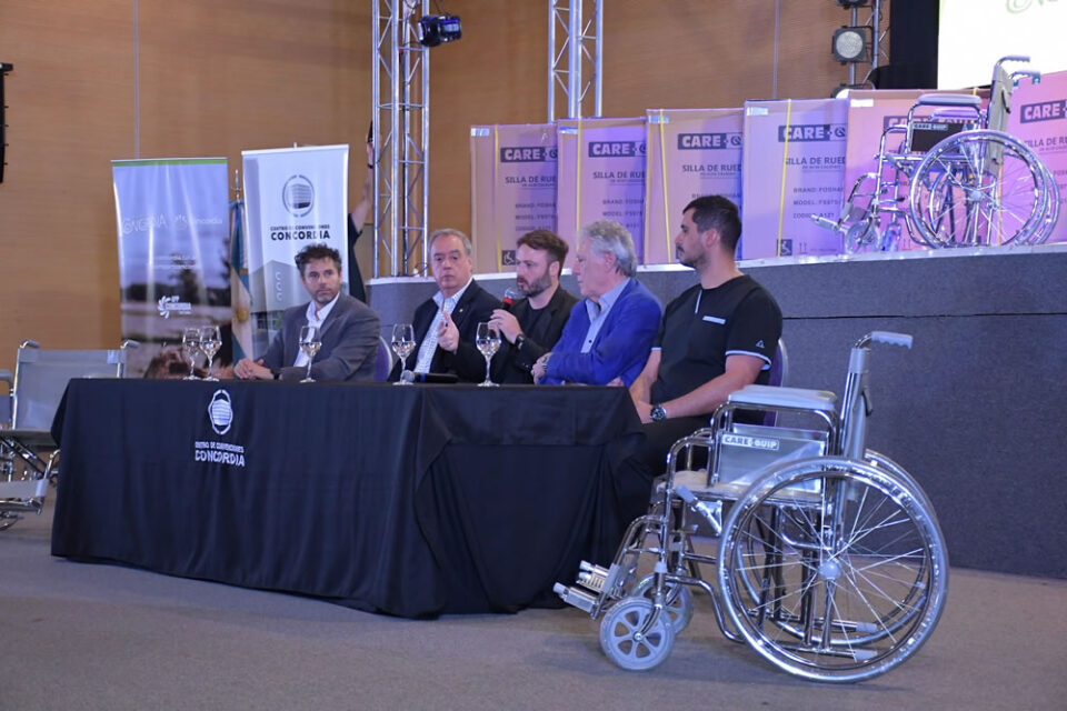 Por su parte, Cusinato puntualizó que la acción “es prácticamente la culminación de un proceso relacionado a la construcción del Aeropuerto de Concordia, que tiene muchos componentes y parte de eso es la entrega de sillas de ruedas para las termas, brazos hidráulicos y ahora estas 14 sillas que vienen para la ciudad de Concordia, de las 40 que se han repartido en toda la región de Salto Grande, incluyendo Federación, Concordia y Colón”.