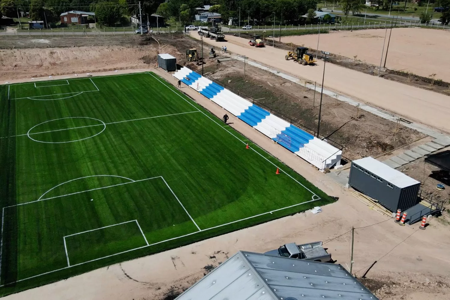 El complejo destaca por su versatilidad para la práctica del fútbol. Actualmente, se trabaja en la finalización de un estadio de fútbol infantil, orientado a las bases del deporte local. Además, la oferta para mayores es de primer nivel, ya que el predio dispondrá de dos canchas de fútbol 11: una de césped sintético y otra de césped natural,. Estos campos de juego se complementan con la reciente colocación de carpeta asfáltica en los accesos, facilitando el ingreso al recinto en lo que se considera el tramo final de la obra.