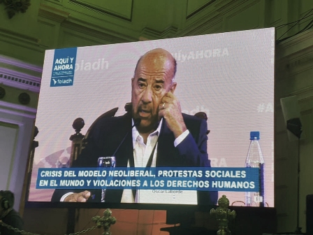 Para el Presidente Oscar Laborde, las violaciones de derechos humanos durante las protestas en los últimos meses en Chile son graves y deben ser investigadas, conforme indicado por la Oficina de la Alta Comisiones para los Derechos Humanos de las Naciones Unidas. «Venimos acá a comprometernos, yo como Presidente del PARLASUR haré un informe de las brutalidades que ya se produjeron, (…) venimos a comprometernos y a pedir solidaridad, la suerte del gobierno argentino que ha decidido aportar a la patria grande tratando que nos vaya bien, nosotros podemos ser el ejemplo que hay otra manera de construir y que no es fatal aceptar las consecuencias de la política neoliberal y ustedes tiene la responsabilidad enorme que esa lucha efectivamente culmine con la trasformación de la Constitución y desnudar aun más esta crisis del modelo», dijo Laborde.
