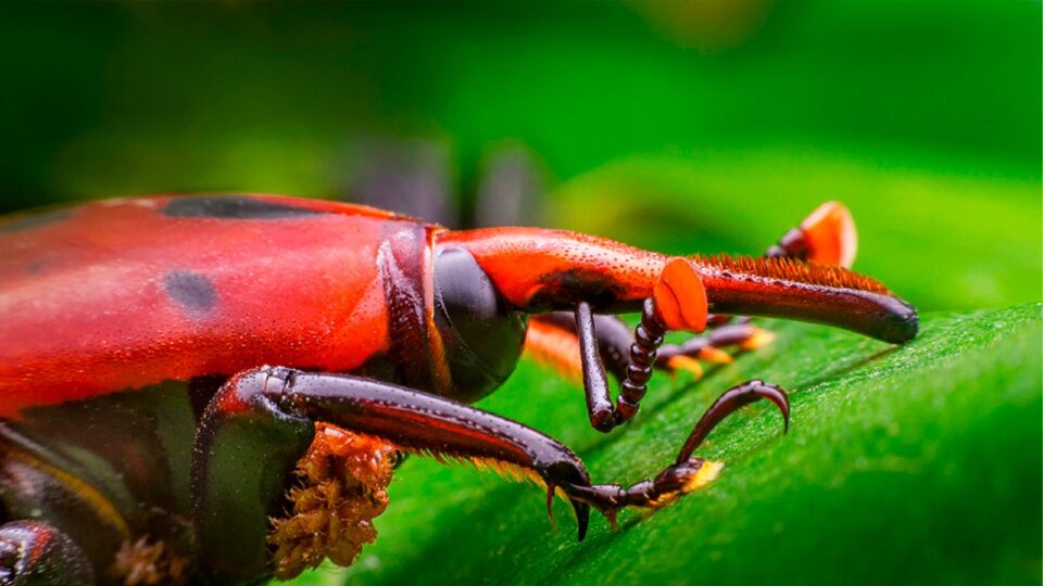 La identificación temprana constituye la única herramienta eficaz para mitigar el impacto antes de que el daño sea irreversible. El insecto adulto posee un color rojizo o anaranjado con manchas negras y un pico largo y delgado, características que lo distinguen de la «vaquita de las palmeras» y otros insectos locales. Las larvas, que se alimentan del tejido interno del tronco, suelen ser las responsables directas del debilitamiento extremo y la posterior muerte de la palmera.
