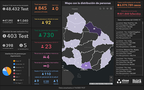El informe epidemiológico del Sistema Nacional de Emergencias (Sinae) del domingo 7 indica que la cifra de personas contagiadas de COVID-19 permanece en 845, ya que no se confirmaron nuevos casos. Actualmente 92 personas padecen la enfermedad. Este domingo se realizaron 403 análisis. Continúan siendo 11 los departamentos con casos activos.
