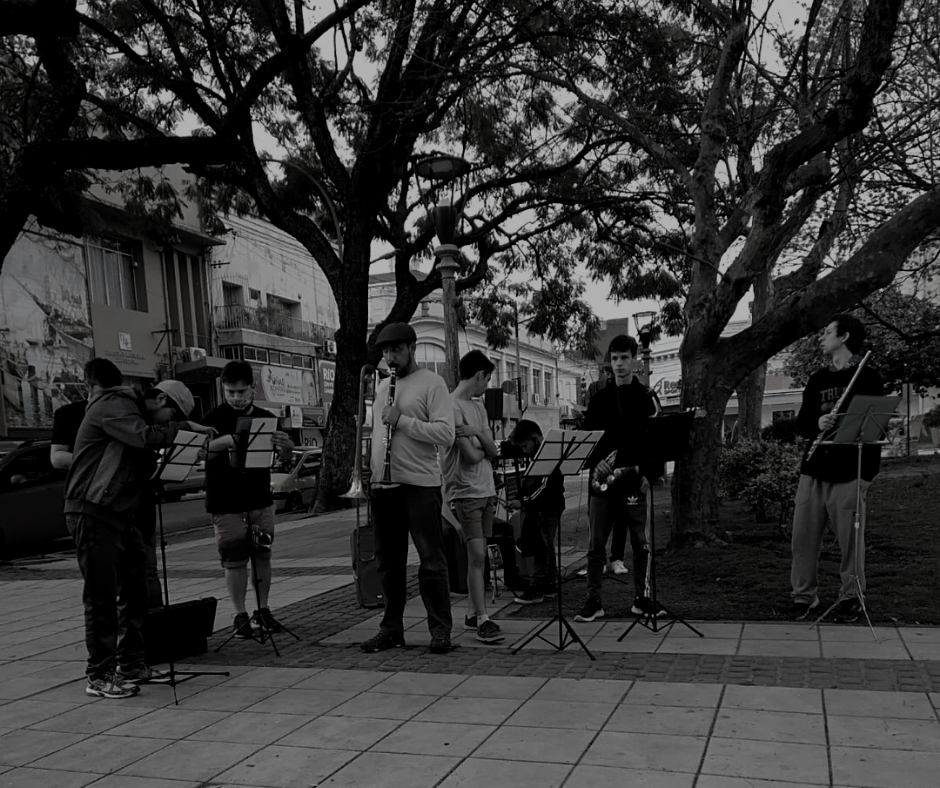 No obstante, la desaceleración de casos y la llegada inminente de otra estación del año, permitieron el regreso gradual a una normalidad cuidada en casi todos los ámbitos de la vida social, especialmente, en la educación y la cultura. «Al retomar la presencialidad nos encontramos con el desafío de reinventar el grupo con los instrumentos que teníamos. Así que como el jazz es prácticamente obligado para los vientos comenzamos a armar una big band», señala este joven tutor, quien ya ha tenido experiencia dirigiendo una orquesta juvenil en San Salvador entre 2015 y 2019, y está próximo a obtener su título de Técnico en Arreglos Musicales de la Universidad Nacional del Litoral (UNL).