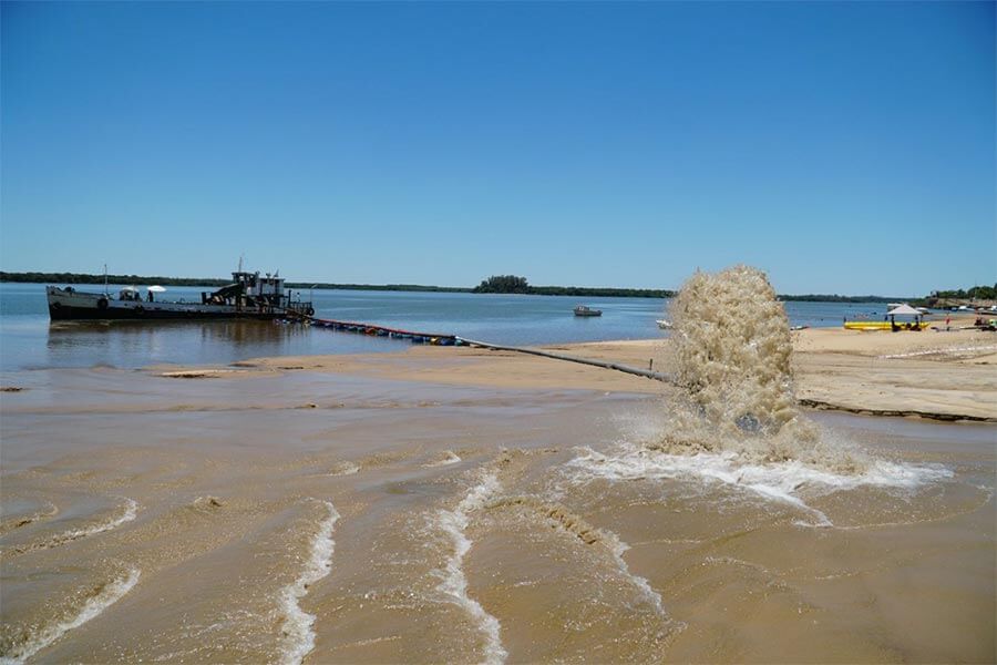 El refulado permite recuperar y mejorar distintos sectores donde la lluvia o la creciente del Río Uruguay provocó erosiones en las playas, buscando ofrecer para la temporada arena de calidad para colonenses y turistas.