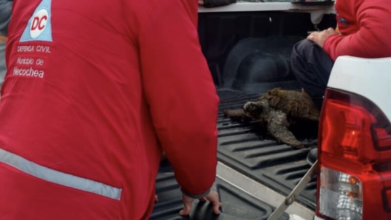 El director de Defensa Civil de Necochea, Augusto Fulton explicó este mediodía a Télam que «el rescate ocurrió el miércoles tras un llamado al 103 que nos informó sobre la presencia de una tortuga en la zona del paraje Karamawi, por lo que rápidamente se montó un operativo para rescatar al ejemplar».