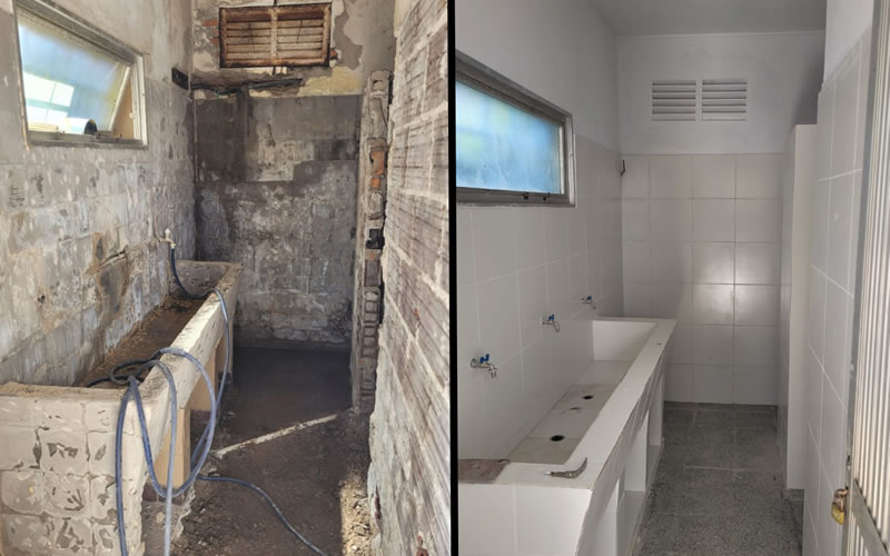 En tanto, para la instalación eléctrica se realizaron trabajos en bocas de luces y tomacorrientes y se adquirieron equipos de iluminación para aplicación de tubos led.