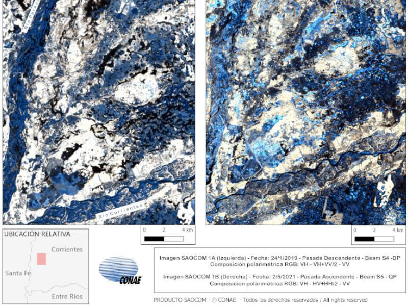 «Los satélites de la misión SAOCOM, el 1A y el 1B, fueron diseñados para proveer datos sobre los niveles de agua en los suelos y la situación de cuencas hidrológicas; son muy sensibles a los cambios en las masas de agua y proveen datos de muy alta calidad, que entre otras cosas permiten identificar los bancos de arena que quedan al descubierto, las islas que quedan más descubiertas y la manera en la que humedad y arroyos se van secando», indicó Torrusio.