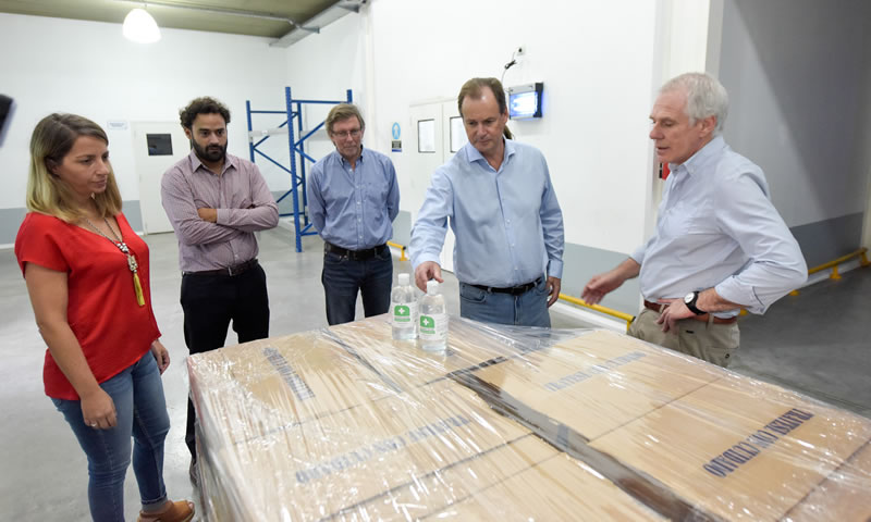 El gobernador Gustavo Bordet estuvo este jueves en el laboratorio Lafedar, empresa paranaense que fabricó alcohol en gel encargado por el gobierno provincial para proveer al servicio sanitario entrerriano en el marco de la pandemia por el coronavirus.
