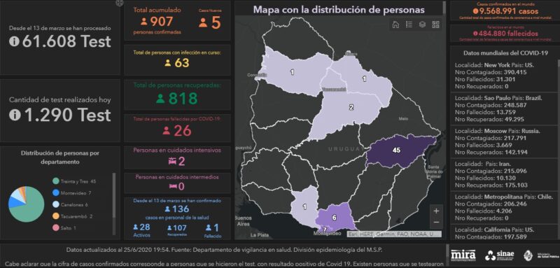 Los departamentos con casos activos son Canelones, Montevideo, Rivera, Salto, San José, Tacuarembó y Treinta y Tres.