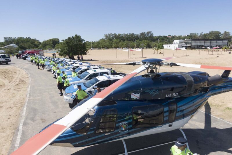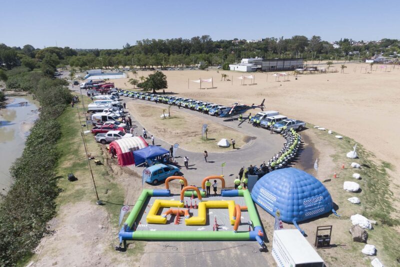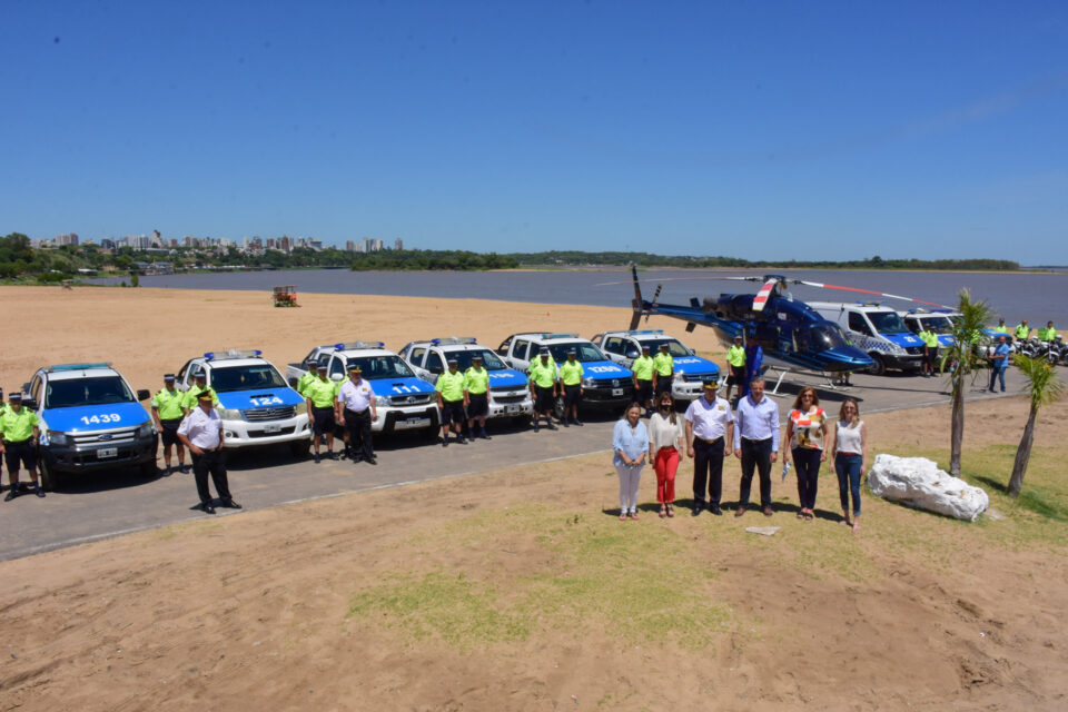 Fueron exhibidos los recursos dispuestos por diferentes organismos estatales para el operativo verano: Policía de Entre Ríos: 35 vehículos, entre camionetas y automóviles, 30 motovehículos, autobombas, cuatriciclos, motocicletas, helicóptero, canes antinarcóticos, carpa policial con instrumentos de prevención vial (alcoholímetros, simuladores visuales, etc.)