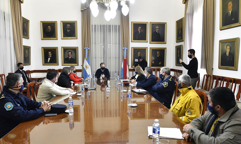 Bordet se reunió la vicegobernadora Laura Stratta; los ministros de Gobierno, Rosario Romero, y Juan José Bahillo; el fiscal de Estado, Julio Rodríguez Signes; el jefe de Policía, Gustavo Maslein; el responsable de la Brigada Forestal, Ariel Martínez; y el secretario de Ambiente, Martín Barbieri, entre otros.