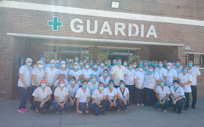 Durante la sencilla pero sentida convocatoria, que tuvo lugar en la puerta de la Guardia Central del hospital Masvernat, la Licenciada María Peña, en nombre de la Supervisión, expresó que es un homenaje de los enfermeros para los enfermos que estuvieron en la primera línea de fuego contra el covid-19.