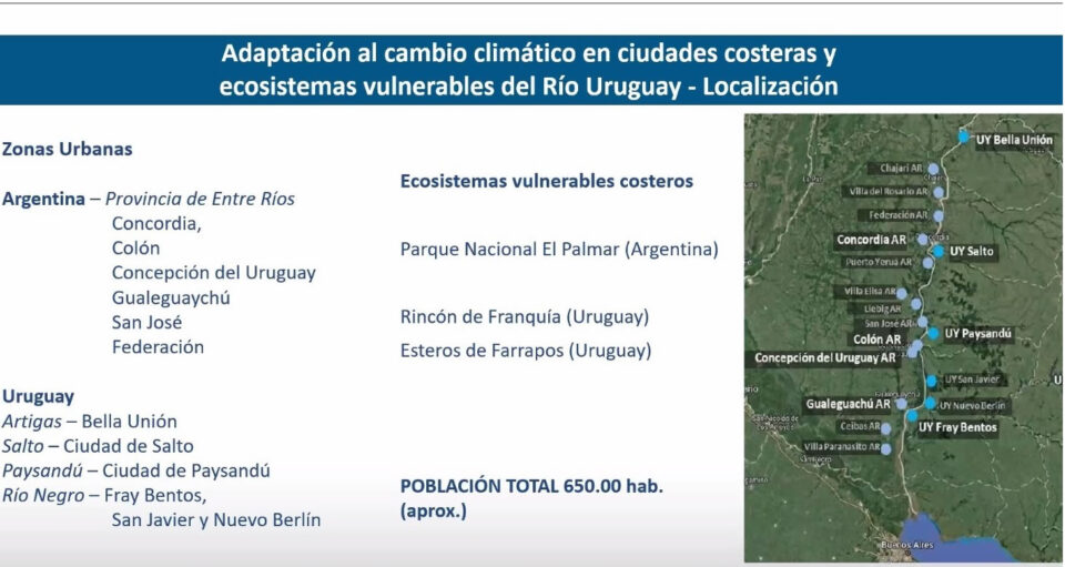 La zona beneficiaria en su ejecución abarca la provincia de Entre Ríos para Argentina y para Uruguay los departamentos de Artigas, Salto, Paysandú y Río Negro. En nuestro departamento concretamente las ciudades de San Javier, Nuevo Berlín y Fray Bentos.