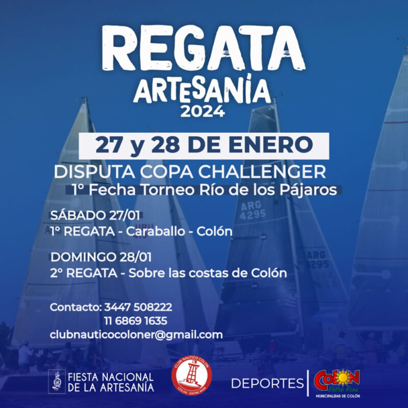 En el marco de una nueva edición de la Fiesta Nacional de la Artesanía que se llevará a cabo del 3 al 11 de febrero, el próximo sábado 27 y domingo 28 de enero, se disputará la Regata Artesanía 2024.