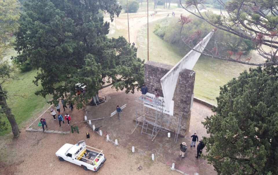 El intendente Alfredo Francolini, junto al secretario de Turismo e Innovación, Aldo Álvarez, el director del Parque San Carlos, Paulo Tisocco y Emilio Ferrari, restaurador y asesor en Patrimonio, oriundo de Uruguay, visitaron el monumento emplazado en el Parque San Carlos. Espacio en el que se están realizando trabajos de recuperación y restauración.