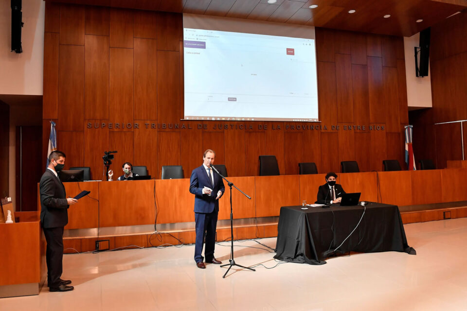 En el acto donde se llevó a cabo el sorteo estuvieron presentes, además, la ministra de Gobierno, Rosario Romero; el presidente de la Cámara de Diputados, Angel Giano; el vicepresidente STJ, German Carlomagno; los demás vocales del STJ: Miguel Giorgio; Daniel Carubia; Claudia Mizawak; Juan Smaldone; Emilio Castrillon; Susana Medina de Rizzo; y Bernardo Salduna; el defensor General Maximiliano Benítez; la presidenta de la Asociación de Magistrados, Gabriela López Arango; y el presidente del Colegio de Abogados, Alejandro Canavesio.