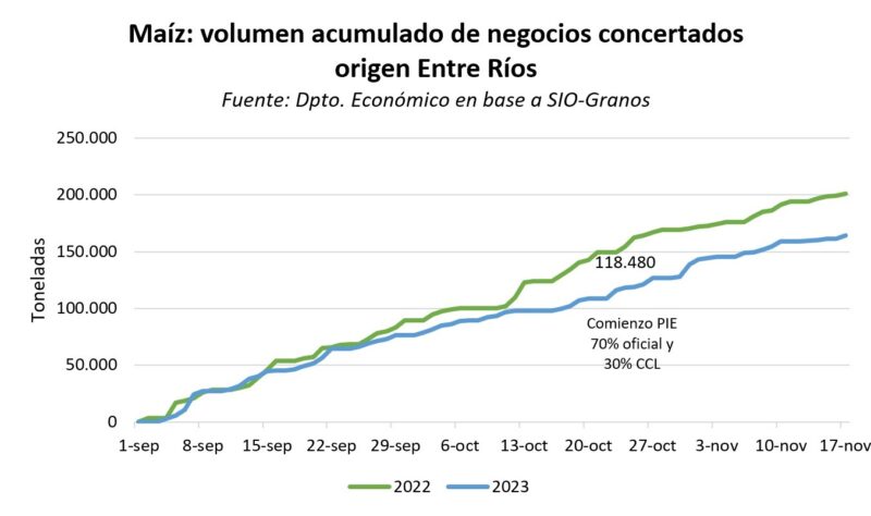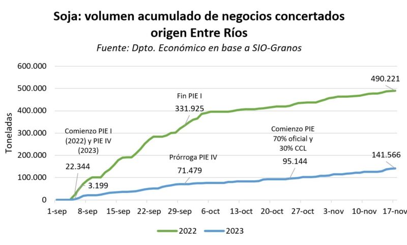 Para analizar el impacto de estas medidas en los últimos meses, se utilizaron datos de las operaciones finales registradas en la base de datos de SIO-Granos desde septiembre hasta el viernes 17 de septiembre, fecha en la que finalizó la cotización 70-30. Estas operaciones fueron filtradas por el origen de procedencia de la mercadería, Entre Ríos, e incluyeron contratos de compraventa y canje, sumando las rectificaciones y restando las anulaciones. No se consideraron las operaciones de fijación de precios.