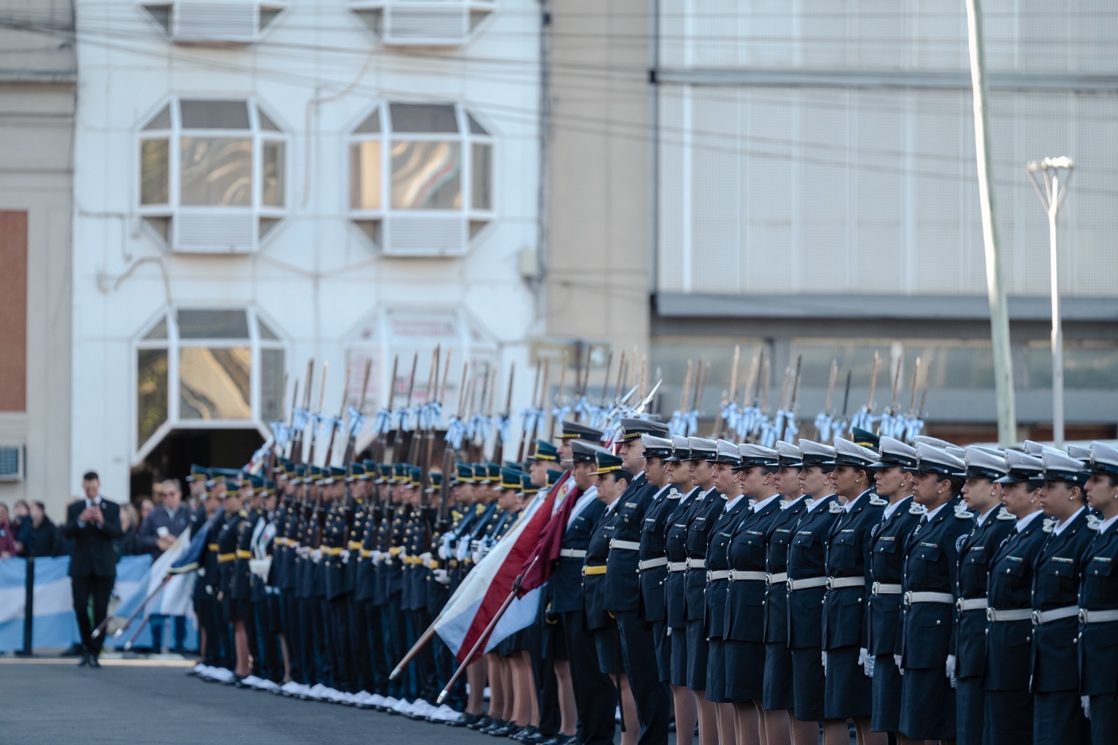 Uno de los momentos más destacados del acto fue la toma de juramento a la bandera nacional por parte de más de 400 cadetes y aspirantes a suboficiales de la Policía y del Servicio Penitenciario de Entre Ríos. También participaron alumnos de cuarto grado de la Escuela “Gregoria Pérez” de Paraná, quienes pronunciaron con orgullo la promesa de lealtad al pabellón nacional frente a cientos de asistentes en la Plaza Mansilla.