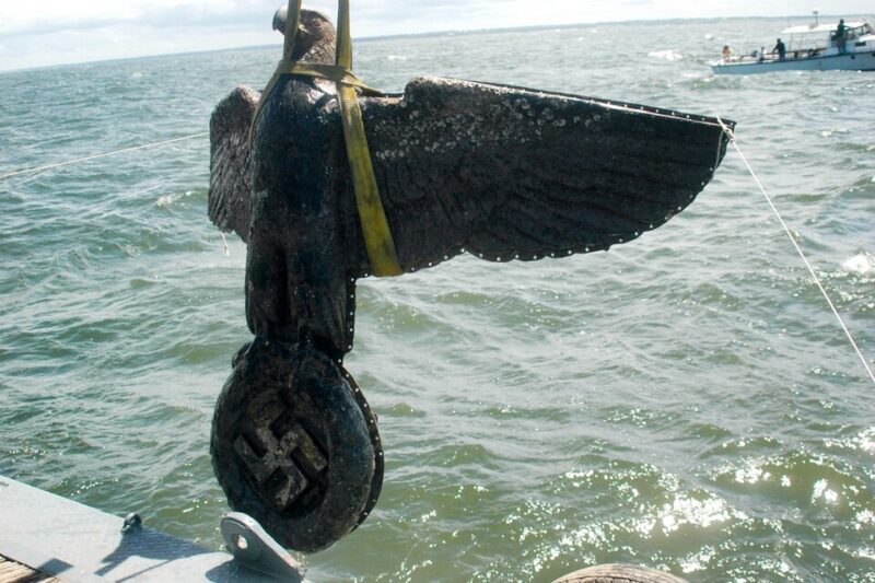 La pieza fue recuperada en 2006 del Río de la Plata por rescatistas privados. Luego de una exposición en un hotel de Montevideo, el mascarón de popa del buque de guerra del Tercer Reich quedó en depósito bajo custodia de la Armada uruguaya, objeto de un conflicto legal. En 2022 la Corte Suprema de Uruguay confirmó que la pieza era propiedad del Estado uruguayo.
