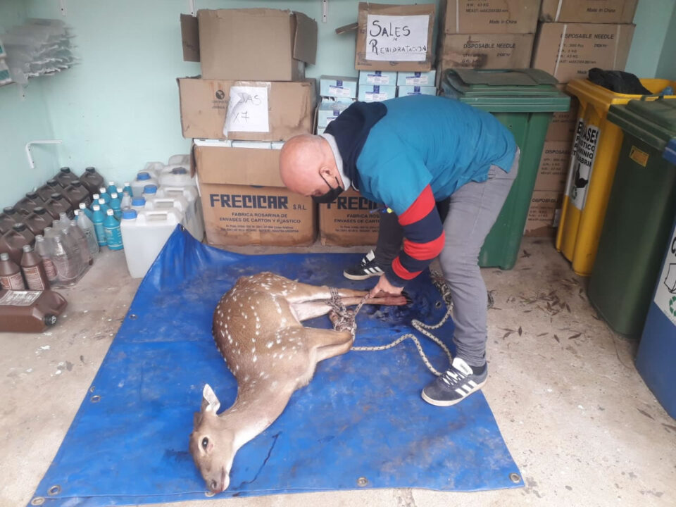 Luego de que vecinos alertaran sobre la presencia de un ciervo axis en zona céntrica de la ciudad, el Municipio junto a Bomberos Voluntarios y las fuerzas de seguridad trabajaron en el traslado del animal a un mejor lugar para su recuperación. El secretario de Desarrollo Social Amadeo Cresto destacó «el trabajo en conjunto» y la «conciencia de los vecinos que rápidamente avisaron para que se pueda intervenir correctamente».