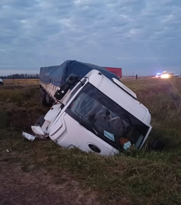 El terrible choque se produjo aproximadamente a las 5:30 de ayer, cuando la Policía fue alertada por otros automovilistas de que a la altura del kilómetro 654 de la Ruta 14, una camioneta había impactado contra un camión con semirremolque, que terminó tumbado dentro de una alcantarilla.