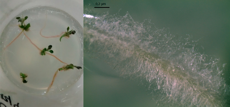 En esta búsqueda, las científicas encontraron una bacteria promotora del crecimiento vegetal que generó cambios muy positivos. “Inoculamos a las plantas con Methylobacterium sp. 2A, una cepa nueva de este conocido género de bacterias, y se registró un cambio en la arquitectura de la raíz, un mayor desarrollo de los pelos radiculares y una mejor respuesta ante situaciones de estrés salino”, detalló la Licenciada en Genética Cecilia Grossi, becaria doctoral del laboratorio.
