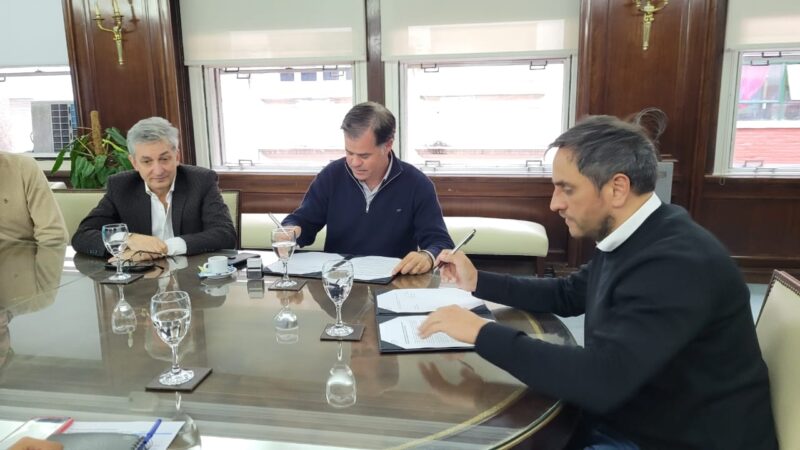 El intendente Dr. Esteban Martín Piaggio y el ministro de Ambiente y Desarrollo Sostenible de la Nación, Juan Cabandié, acompañado por Soledad Cantero, jefa de Gabinete del Ministerio, Sergio Federovisky, secretario de Control y Monitoreo Ambiental, y Jorge Etcharrán, subsecretario de Fiscalización y Recomposición firmaron un acta de entendimiento para articular acciones de monitoreo de calidad del aire.