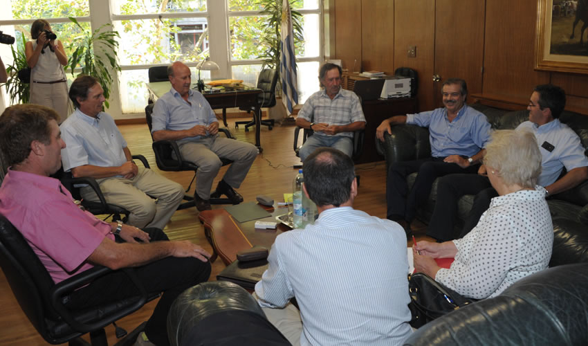 El ministro Carlos María Uriarte, el subsecretario Ignacio Buffa , la directora general, Fernanda Maldonado se reunieron este martes 3 con Alfredo Lago, de la Asociación Cultivadores de Arroz; Gabriel Capurro, de la Asociación Rural Uruguay, Walter Frisch, de la Asociación Nacional Productores de Leche; Mario Bursalino, de la Comisión Fomento Rural; Pablo Perdomo, representante de las Cooperativas Agrarias Federadas, y Fernando Dighiero, de la Federación Rural del Uruguay