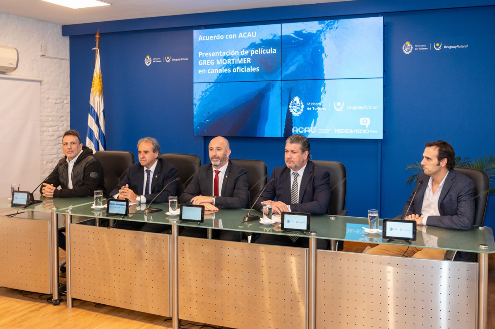 La actividad se llevó a cabo este jueves 25 de abril. Asistieron el ministro de Turismo, Eduardo Sanguinetti; el subsecretario de la cartera, Remo Monzeglio; el presidente de ACAU, Facundo Ponce de León, y el director del documental “Greg Mortimer”, Federico Lemos.