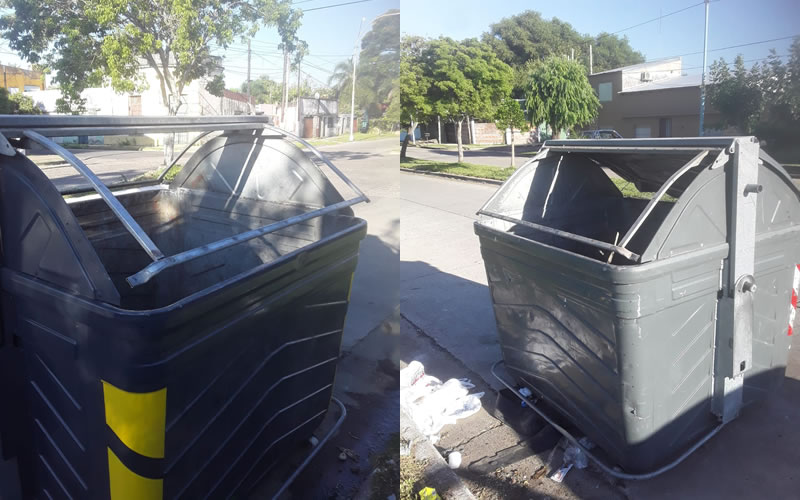 La Subsecretaría de Servicios Públicos de la Municipalidad informó que se encontraron distintos contenedores de residuos en diversos sectores de la ciudad, que fueron vandalizados. «Los rompen para robarles las tapas, que son de aluminio», indicaron desde la dependencia municipal.