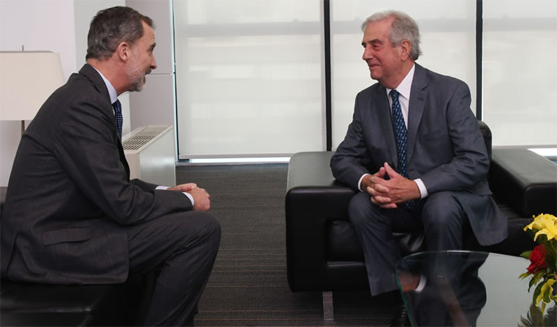Uruguay es “un faro en la región (latinoamericana) desde el punto de vista de la institucionalidad democrática, la fortaleza política, los equilibrios sociales y la paz social”, le dijo el rey Felipe VI de España al presidente Vázquez en la reunión mantenida en la Torre Ejecutiva, sede del Gobierno nacional.
